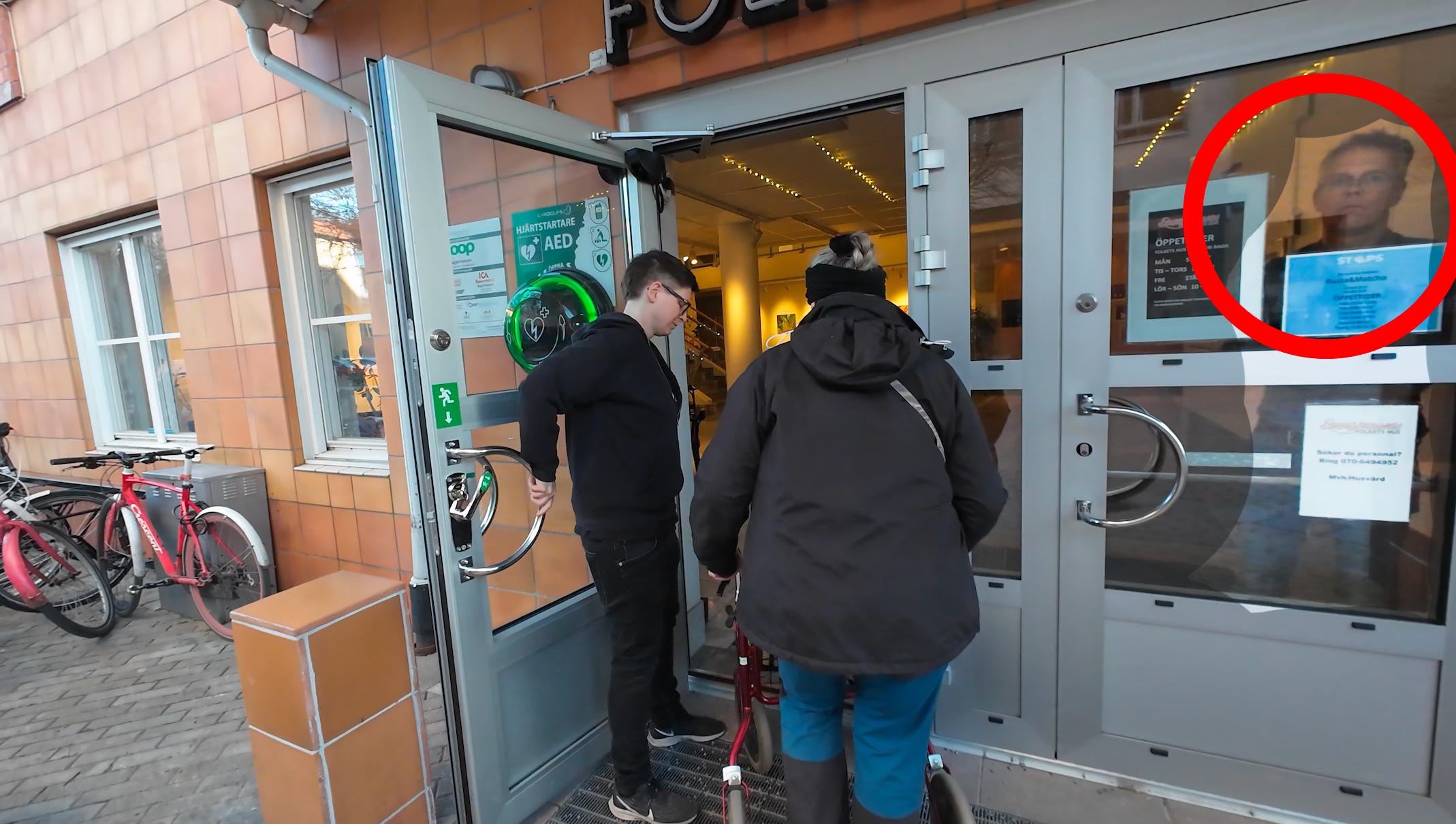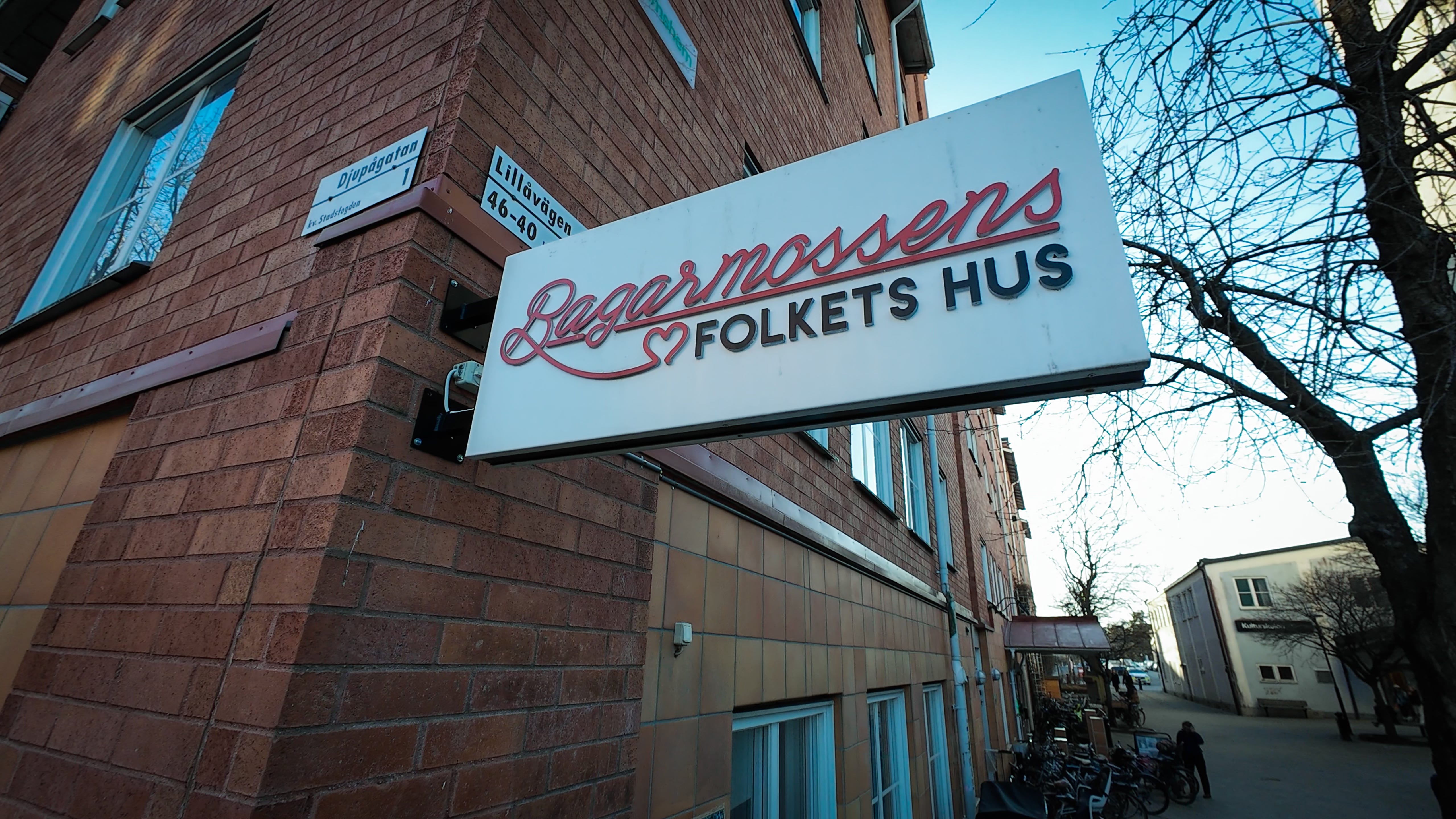 Dels bevakades ingången av Bagarmossens Folkets Hus ordförande Claes Elmgren. När jag ifrågasatte varför han vaktade dörren nekade han till att ha gjort det. Han kunde dock ses göra detta vid flera tillfällen. Därefter smällde han aggressivt igen dörren.