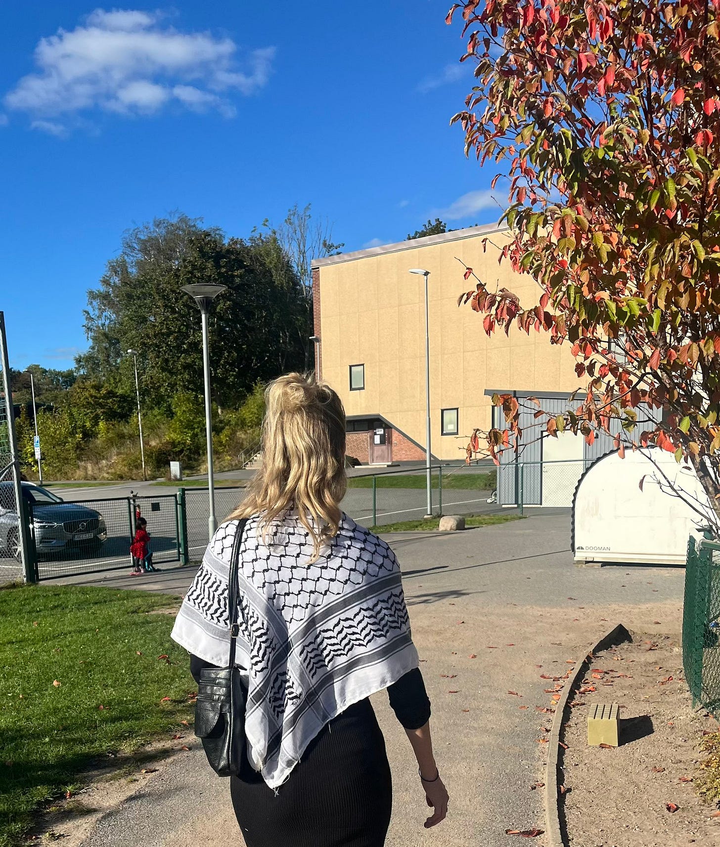 Den 26 september laddar riksdagsledamoten Rashid Farivar (SD) upp en bild på X, föreställandes en kvinna iförd palestinasjal, på en förskola.