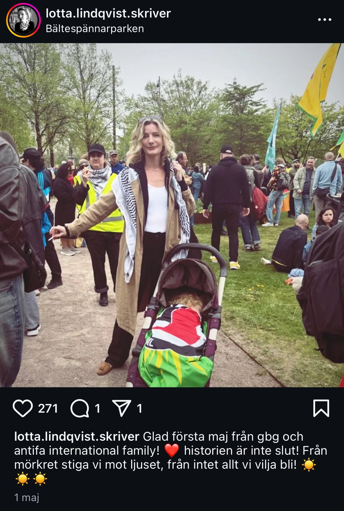 På 1 maj i år laddade Lotta upp en bild på Instagram, från ett demonstrationståg.