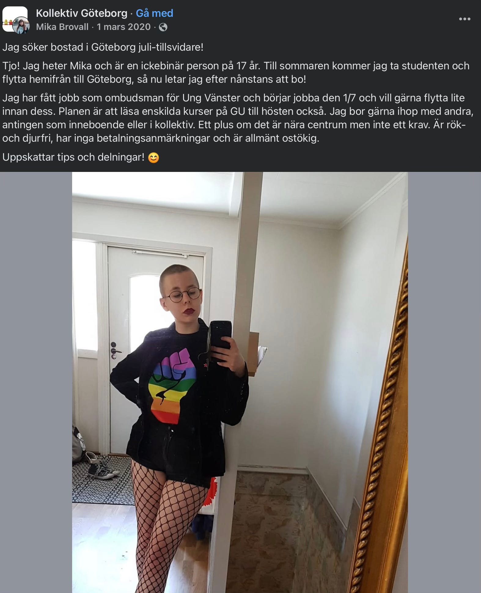 Mika Brovall är förbundssekreterare för Ung Vänster. “Hen” är 23 år gammal. Och “hen” identifierar sig som “ickebinär”.