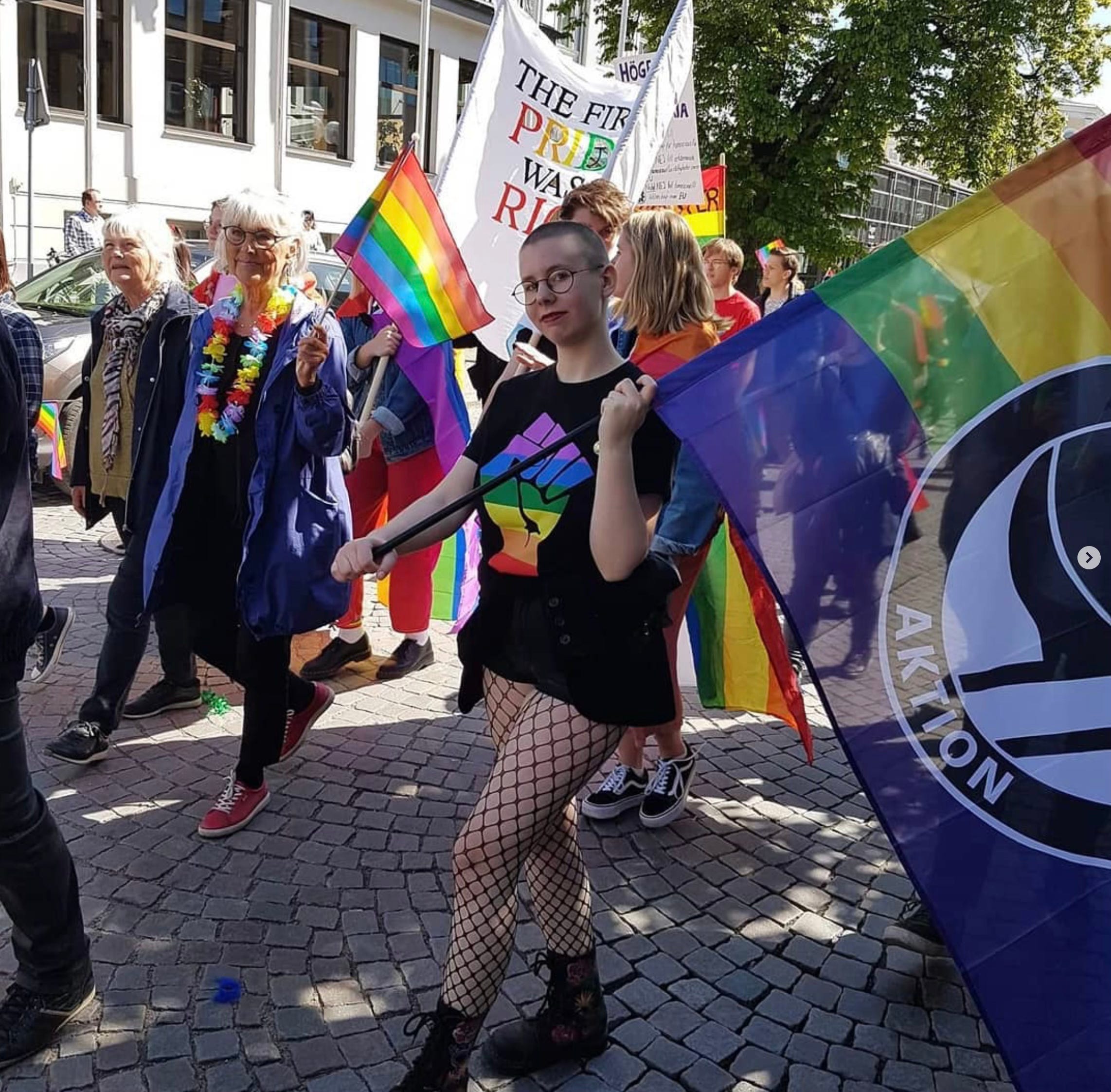 På sin Instagram laddade “hen” i maj 2019 upp en bild på sig själv hållandes i en AFA-flagga, med texten “Lite sådär lagom HBTQ-militant🏳️🌈✊”.